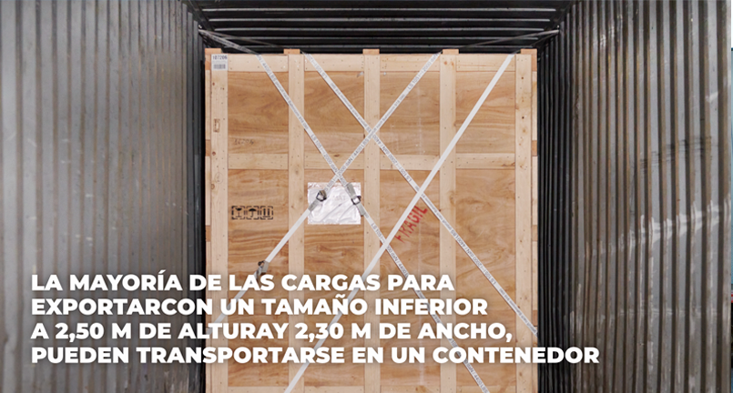 La mayoría de las cargas para exportar con un tamaño inferior a 2,50 m de altura y 2,30 m de ancho, pueden transportarse en un contenedor. Este es el método de envío de mercancías industriales es la solución más rentable.