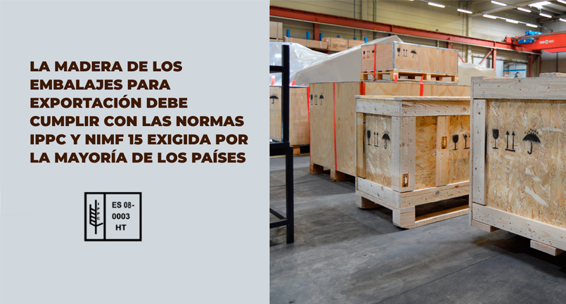 La madera de los embalajes para exportación debe cumplir con las normas IPPC y NIMF 15 exigida por la mayoría de los países.