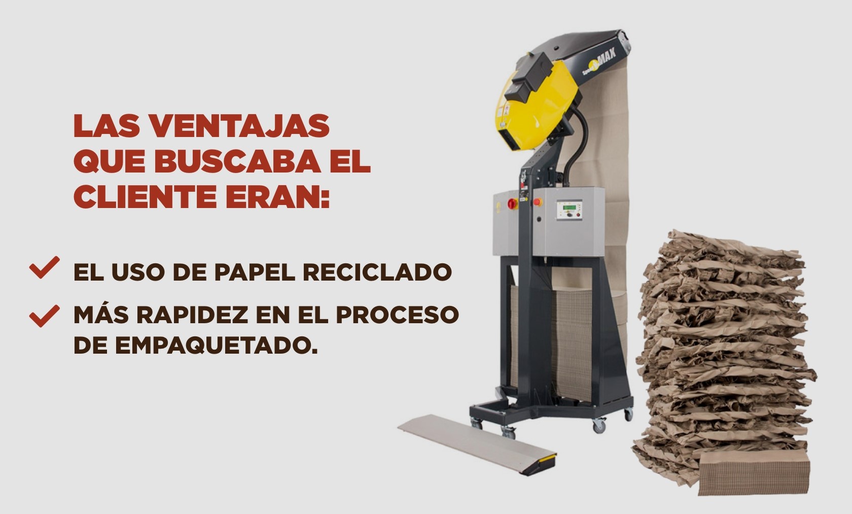 Las ventajas que buscaba el cliente principalmente eran, por un lado, el uso de papel reciclado y, por encima de todo, buscaba más rapidez en el proceso de empaquetado.