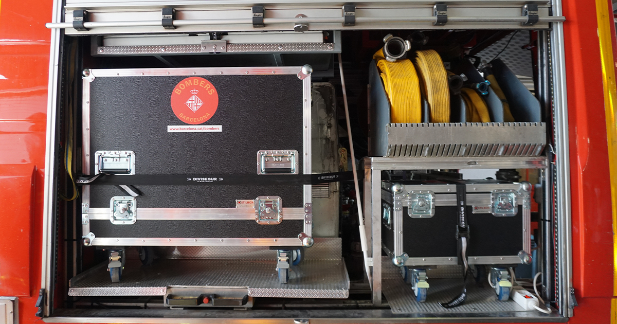 Hemos desarrollado3 flightcases a medida, integradas para el camión didáctico de Bomberos en Barcelona: flightcase tipo baúl para transporte de equipo audiovisual, otra flightcase desmontable...