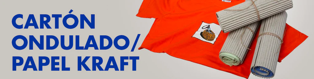 Cartón ondulado y papel kraft. Es una alternativa que está muy de moda y reciclable. Se adapta a envíos sencillos y ligeros.
