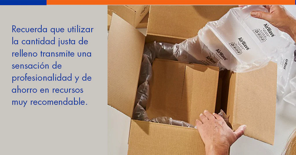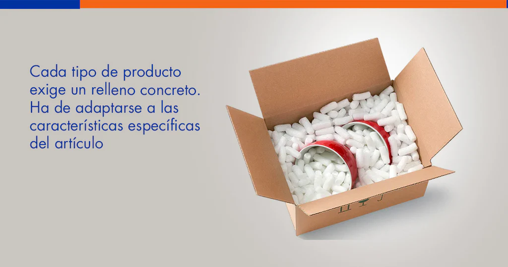 - Cada tipo de producto exige un relleno concreto. Ha de adaptarse a las características específicas del artículo y debes valorar los posibles golpes o desplazamientos que pueda sufrir durante el transporte.