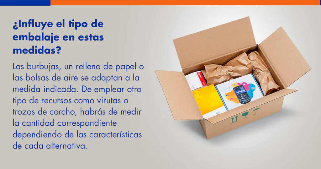 Depende. Las burbujas, un relleno de papel o las bolsas de aire se adaptan a la medida indicada. De emplear otro tipo de recursos como virutas o trozos de corcho, habrás de medir la cantidad correspondiente dependiendo de las características de cada alternativa.