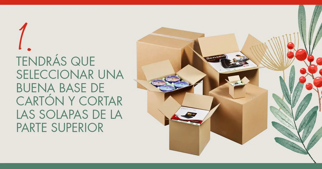 1. En primer lugar, tendrás que seleccionar una buena base de cartón y cortar las solapas de la parte superior. Entre todas las disponibles en nuestro catálogo, nosotros te recomendamos que elijas las cajas de cartón de canal doble FEFCO 0201 400 x 300 x 200 mm. Vienen en paquetes de 10 unidades e incluyen solapa. Son especialmente resistentes y estables a los apilamientos.