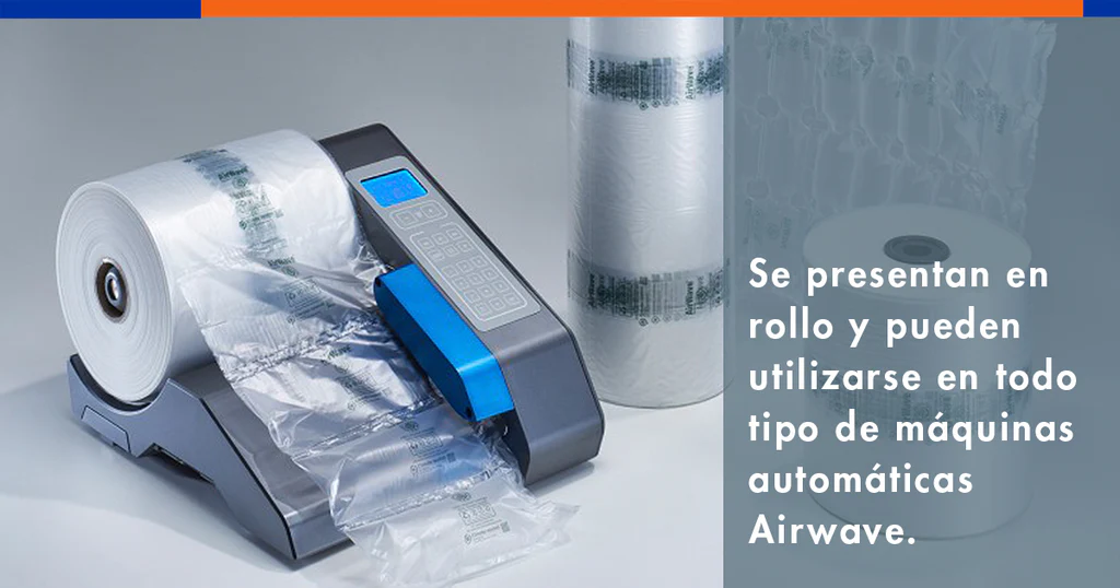 Los films ecológicos funcionan como los plásticos tradicionales. Se presentan en rollo y pueden utilizarse en todo tipo de máquinas automáticas Airwave. De esta forma, podemos adaptarlo a nuestras necesidades sin que nos preocupen los requerimientos diferentes de cada artículo. Es decir, podremos utilizar el mismo film para transportar productos con características o necesidades diversas.