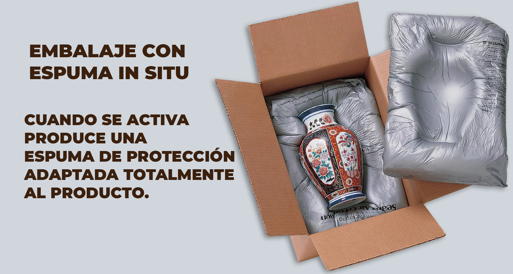El sistema de relleno con espuma in situ (también conocida como espuma bajo demanda) se produce cuando se combinan dos espumas líquidas en una bolsa o revestimiento. La espuma se expande rápidamente para rodear el producto creando un molde protector, adaptándose perfectamente al artículo.