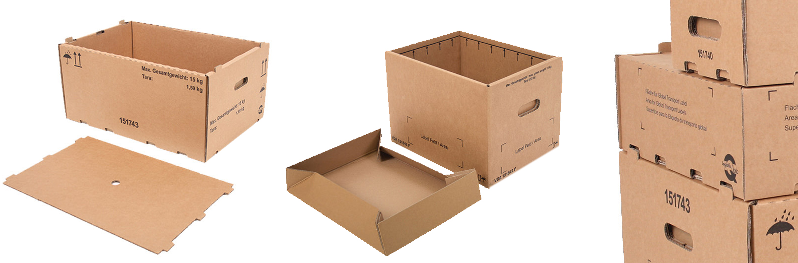 El formato KLT asegura compatibilidad universal con sistemas de almacenamiento, transporte y manipulación utilizados por fabricantes automotrices europeos y sus proveedores. Las dimensiones normalizadas permiten optimización máxima del espacio en contenedores, camiones y almacenes, mientras que la construcción en cartón corrugado de alta resistencia protege componentes sensibles durante todo el ciclo logístico.