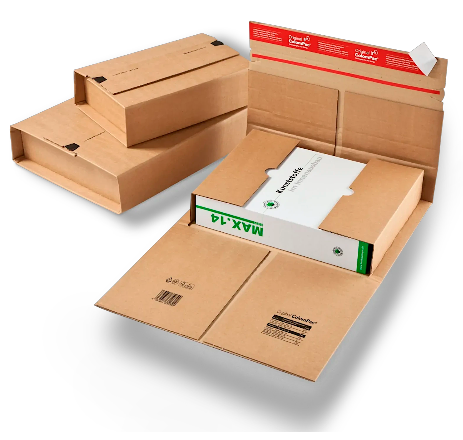 Fabricadas con cartón certificado FSC® procedente de bosques gestionados responsablemente, disponibles en cartón corrugado blanco o papel kraft. Completamente reciclables y personalizables con logotipo corporativo, estas cajas para envío e-commerce ofrecen excelente relación calidad-precio mientras respetan el medio ambiente y fortalecen la imagen de marca.