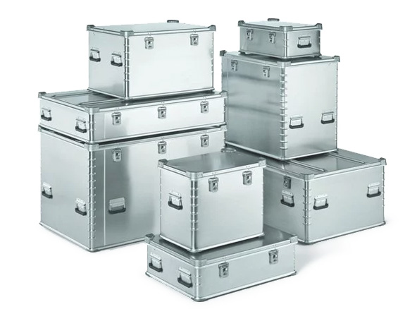 Estas cajas de aluminio destacan por su sellado hermético, mientras que modelos móviles incorporan ruedas y asas telescópicas para manipular cargas peligrosas de forma ergonómica por un único operario.