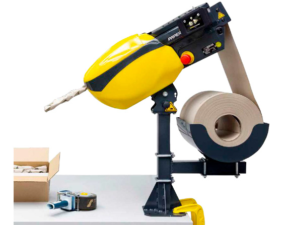 La máquina destaca por su modo de extracción y suministro programable, que permite configurar la velocidad según las necesidades específicas de cada proceso. A pesar de su tamaño reducido, produce relleno extrafuerte especialmente diseñado para paquetes pequeños, garantizando protección óptima para todo tipo de productos.